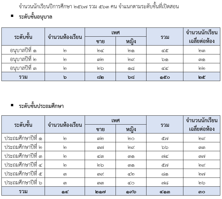 ข้อมูลนักเรียนปีการศึกษา ๒๕๖๗